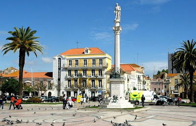 Praça do Bocage, com o poeta no seu pedestal.